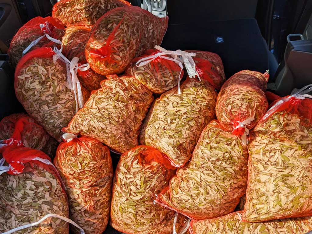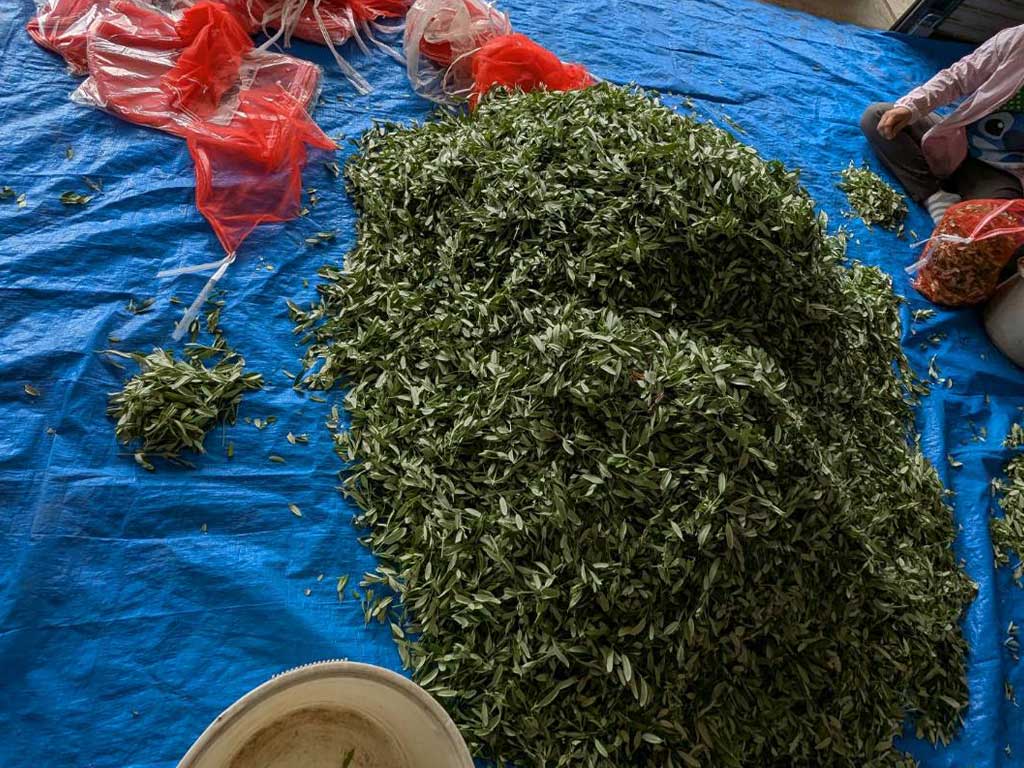摘み取った葉は、このあと乾燥・加工されて、夏にぴったりな爽やかなオリーブティーに。